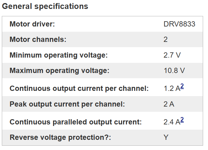 Before connecting the motor driver to the car, it is important to run some tests, which I did by power the motor drivers to a power supply to be able to control current. The following are general specifications for the motor drivers we're using: